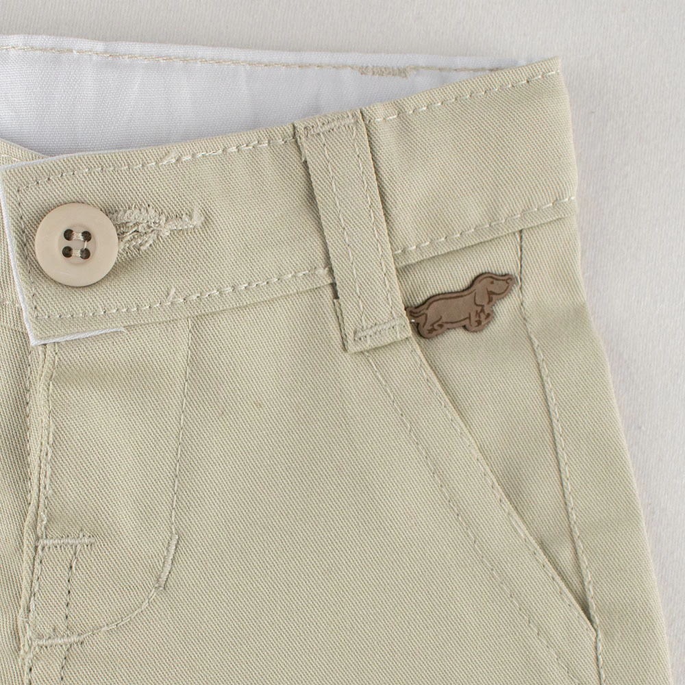 Modelo: Bermuda clássica em sarja com detalhe de cachorrinho