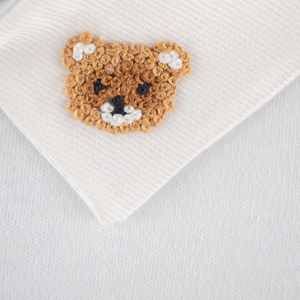 Características Principais: Um toque de fofura para o visual do bebê! Este body polo de manga curta é confeccionado em algodão macio, proporcionando conforto durante todo o dia. O destaque fica por conta do bordado em relevo de focinho de cachorrinho no modelo bege e de ursinho no modelo marrom, adicionando charme e personalidade à peça. Possui gola polo clássica e práticos botões de pressão na nuca e na parte inferior para facilitar na hora de vestir.