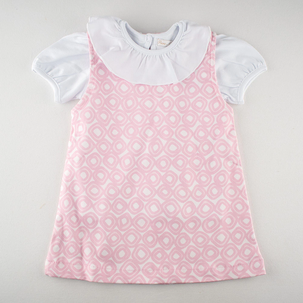 Características Principais:Delicadeza e estilo em um só conjunto! O jumper estampado sem mangas, de corte reto e gola redonda, traz leveza e um ar moderno, enquanto o fecho de botões nas costas facilita na hora de vestir. Para completar, a camisa com gola de babado e manga curta acrescenta aquele toque romântico e gracioso que transforma a produção. Um conjunto pensado para deixar as pequenas ainda mais encantadoras em qualquer ocasião.