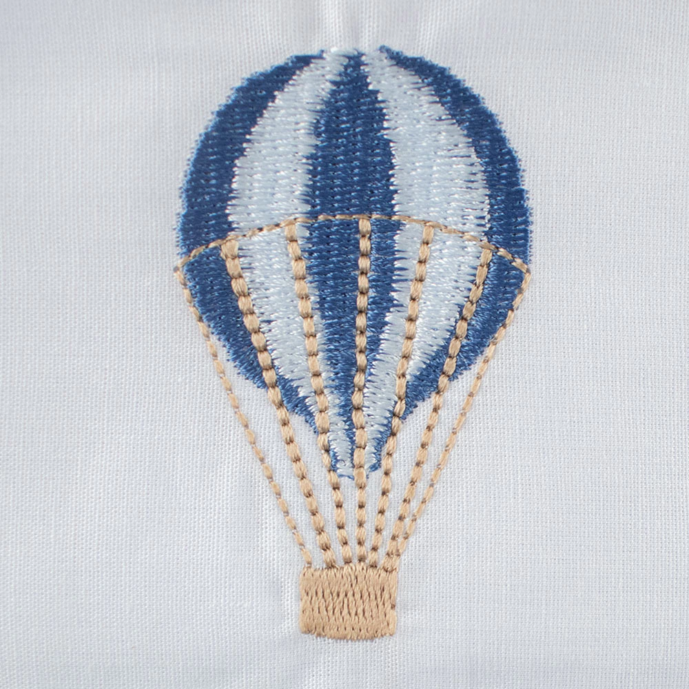 Características Principais: Kit com duas fraldas de ombro confeccionadas em algodão macio, com delicado barrado e bordado de balão em dois tons de azul. O acabamento em viés creme adiciona charme e sofisticação, tornando o enxoval do bebê ainda mais encantador.