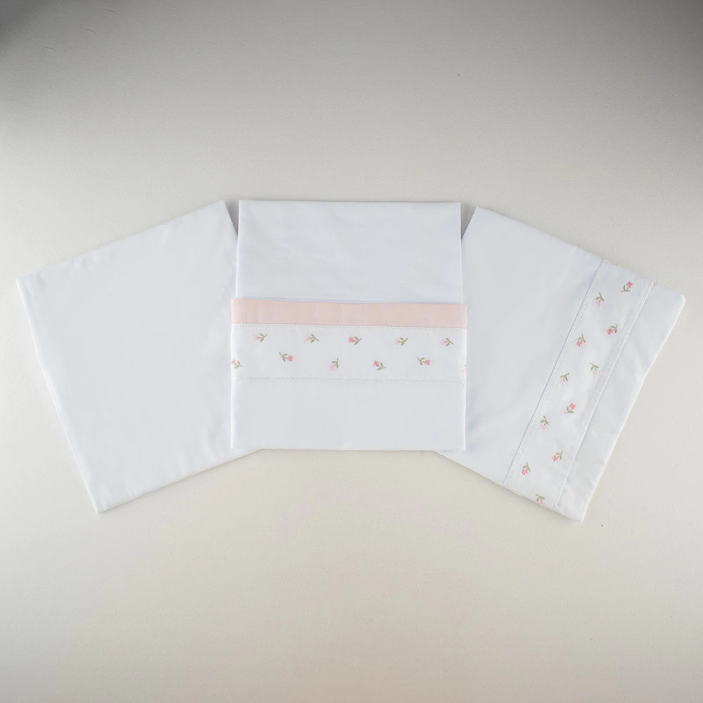 Características Principais: Este lençol bordado é um verdadeiro toque de elegância para o berço ou carrinho do bebê. Com delicados bordados de rosas e caules, acompanhados de uma faixa na mesma cor das flores, ele traz um charme sofisticado ao espaço do bebê. Confeccionado em malha 100% algodão, o lençol proporciona suavidade e conforto para um sono tranquilo, enquanto o bordado adiciona um toque de beleza e cuidado meticuloso. Ideal para quem busca peças de alta qualidade que combinam conforto e estilo.