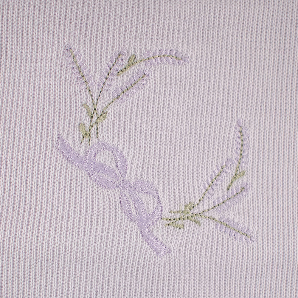 Características Principais: Manta tricotada com bordas arredondadas, delicadamente bordada com ramos de lavanda e um laço gracioso. Uma peça charmosa e sofisticada, que une a beleza do tricotil com a delicadeza dos detalhes bordados, tornando-se especial para compor o enxoval do bebê.