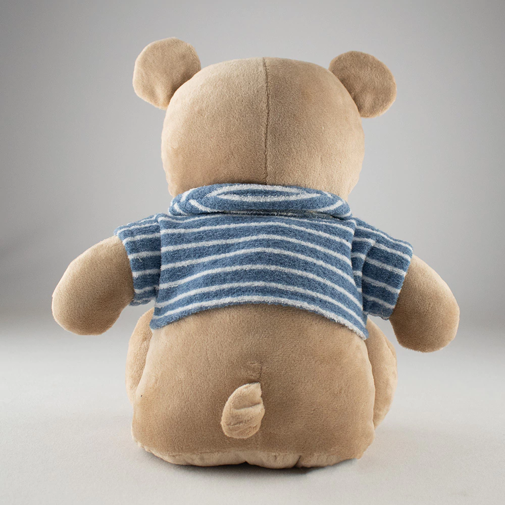 Características Principais: Um companheiro fofinho que transmite ternura em cada detalhe! Este ursinho de pelúcia vem vestido com uma charmosa camiseta listrada azul e branca, trazendo um toque moderno e cheio de estilo. Seu detalhe na sobrancelha dá ainda mais personalidade e expressividade, tornando-o único e especial. Macio e aconchegante, é perfeito para abraços apertados e para decorar o quartinho do bebê com muito encanto.